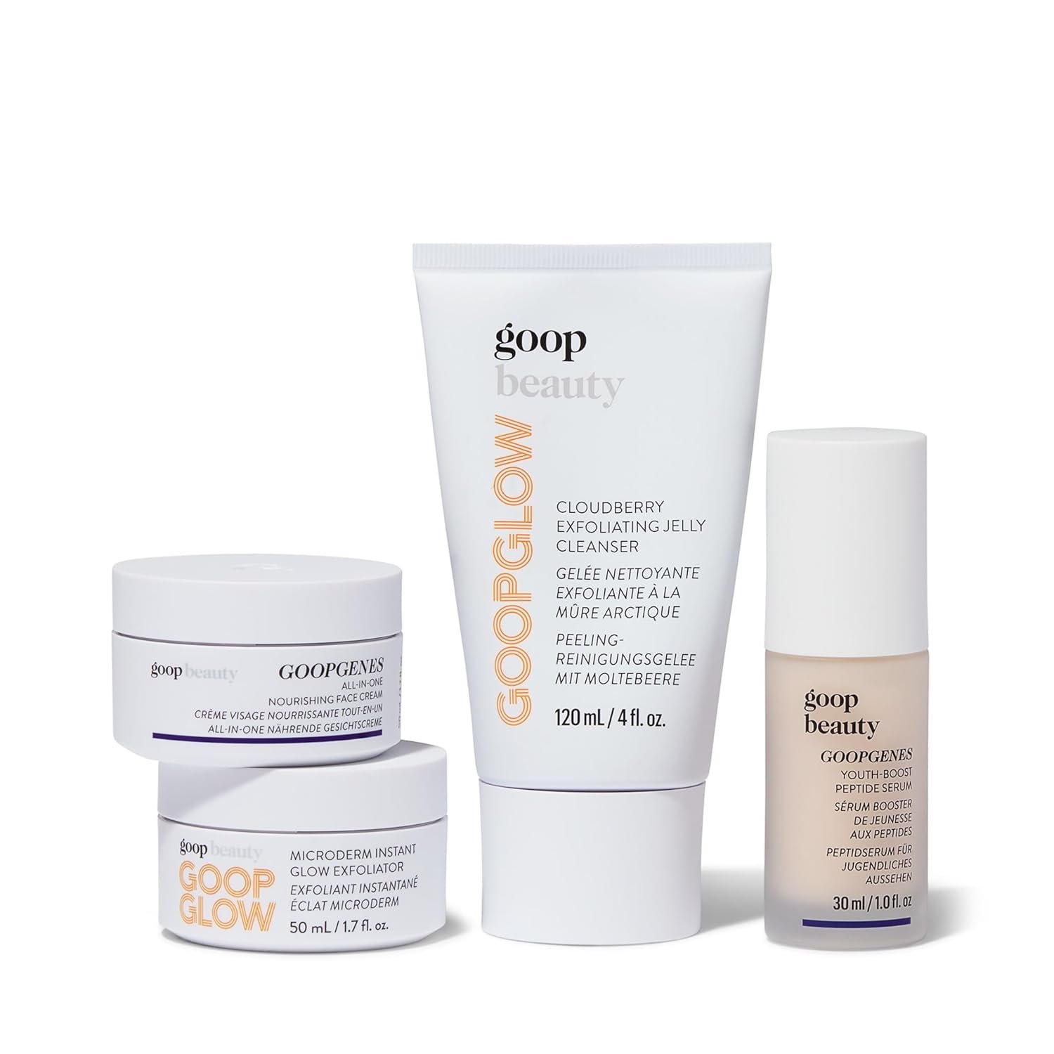 goop Beauty The Face Mini | 4 fl oz of Jelly Cleanser | 1.7 fl oz of Microderm Exfoliator | 1 fl oz of Peptide Serum | 1.7 fl oz of Face Cream | Simple Skin Care Routine